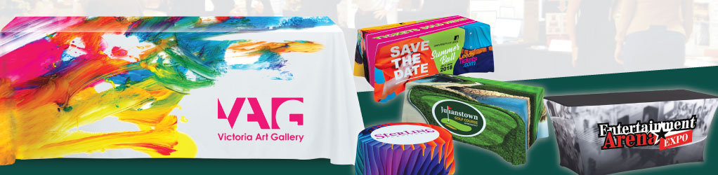 Custom printed tablecloths are a great way to dress the top table at your conference or exhibition and also make an excellent impression in hotel's or restaurant's printed with your brand name.