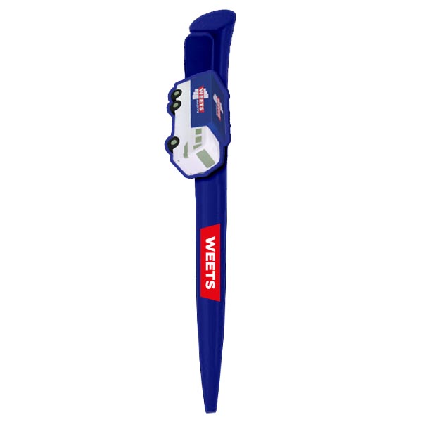 Twist roller ball pen with a shaped clip of your choice, either select from one of the many designs already available or have your own design to your own specification made at no extra cost. Price included a print in full colour to the clip and barrel. Enquire for full details on bespoke shape capabilities.