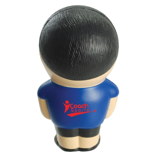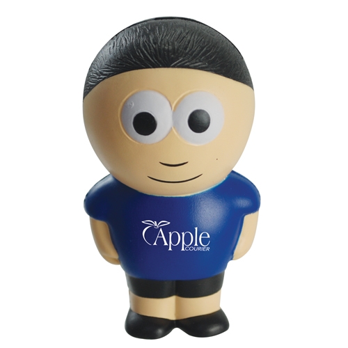 His cartoon style face makes him a fun and cool stress item to help advertise your promotional needs.