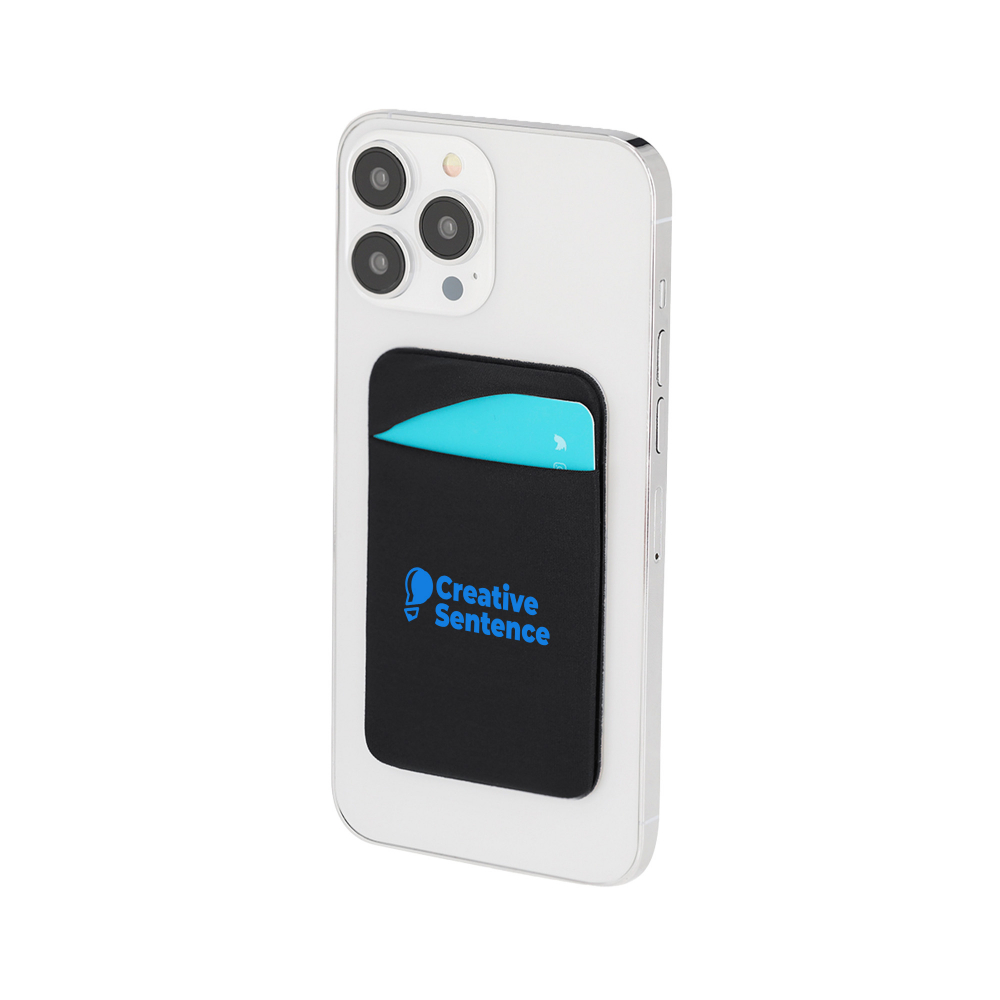 Versatile multi-purpose phone pouch made from flexible elastic material, designed to securely hold everyday essentials such as cards, cash, keys, and headphones. The strong adhesive fastening system allows easy attachment to the back of your phone, offering convenient, hands-free storage while keeping your personal items organized and easily accessible on the go.