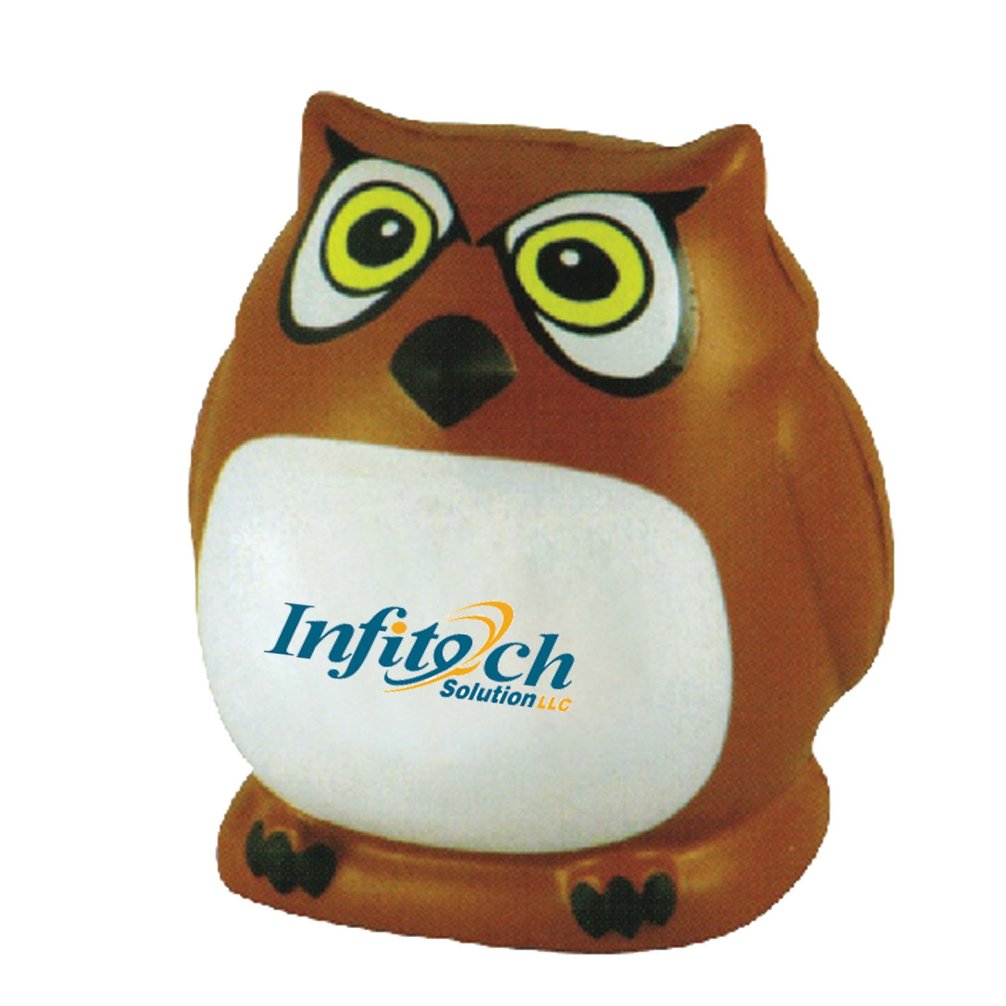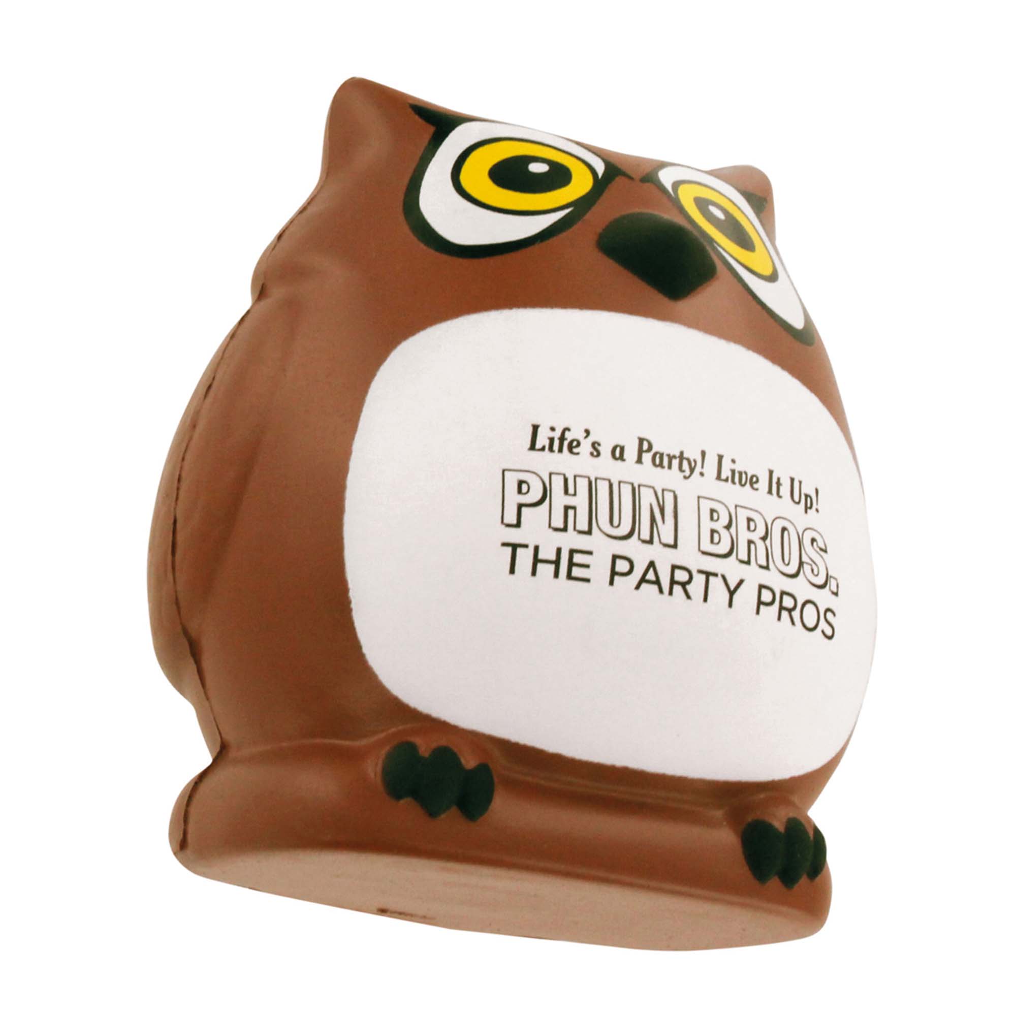 Promote your brand with this cartoon style Owl Stress Reliever printed from one to full colour with your company name or business details, a great way to remind your customers about you!
