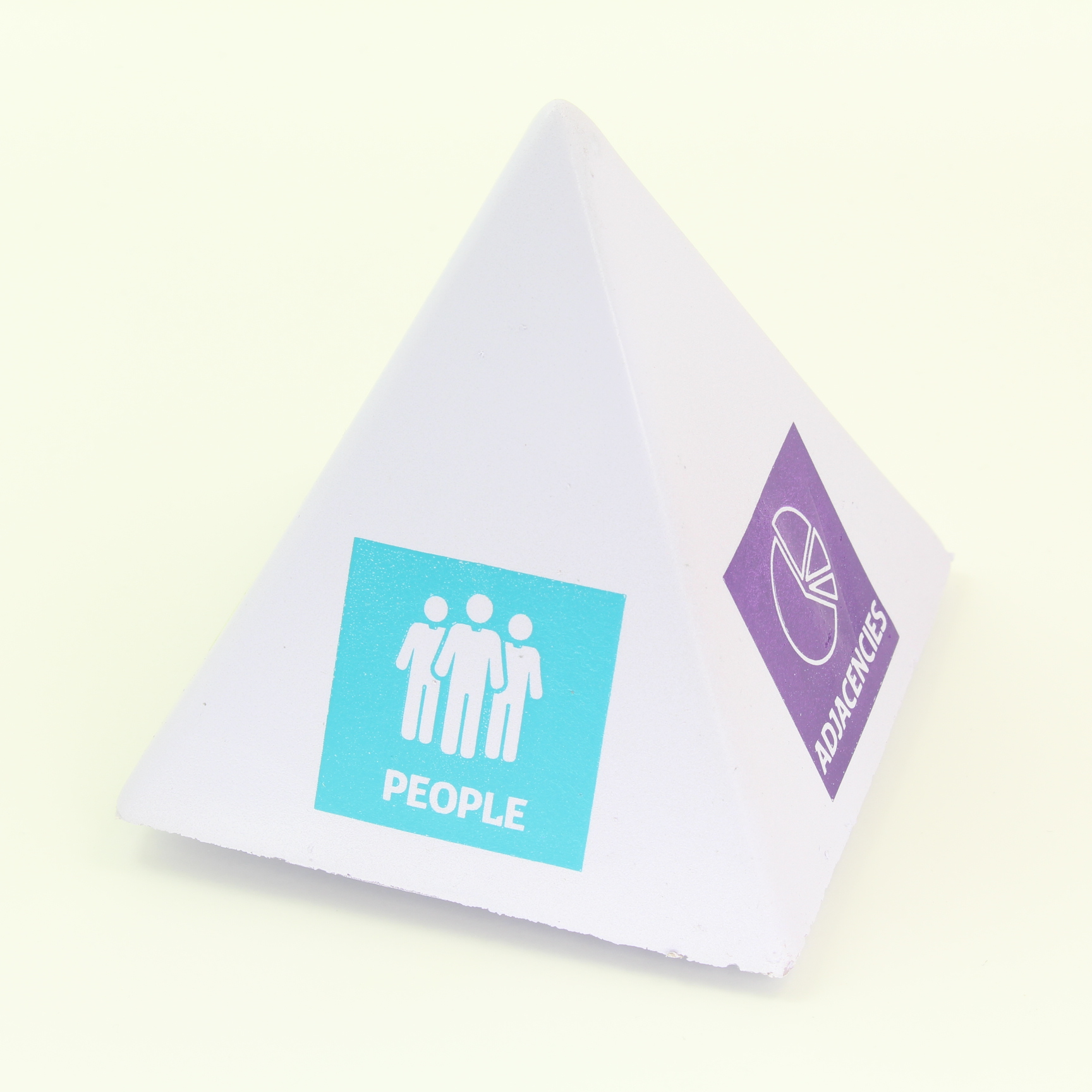 Once you pass on these imprinted Pyramid Stress Balls they will find homes on your clients desks and countertops.