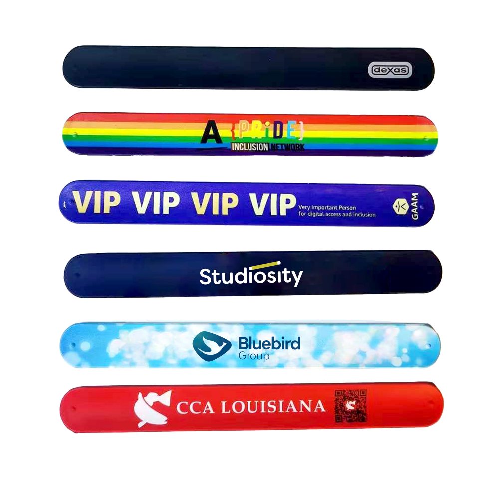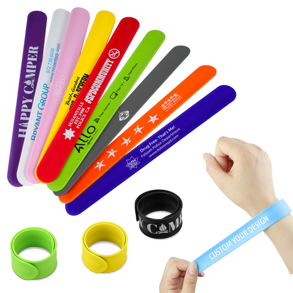 Add a playful twist to your style with our silicone slap bands. These versatile wristbands effortlessly snap onto your wrist, offering a comfortable fit for all ages.